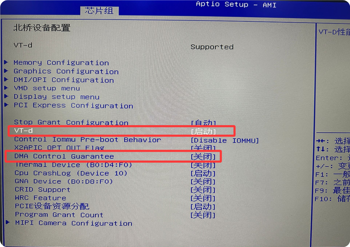 【VT】:将下图中“VT-D”的选项设置为“启动”