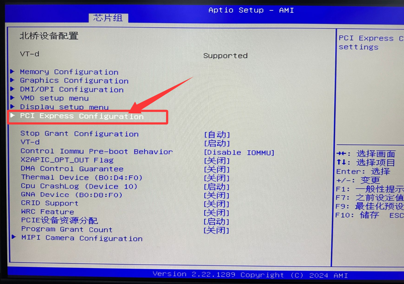 3.进入后,选择下图所指的“PCI Express Conf iguration”回车进入。