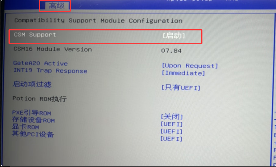 在“高级”栏目中,将CSM关闭之后再去操作安全启动即可。