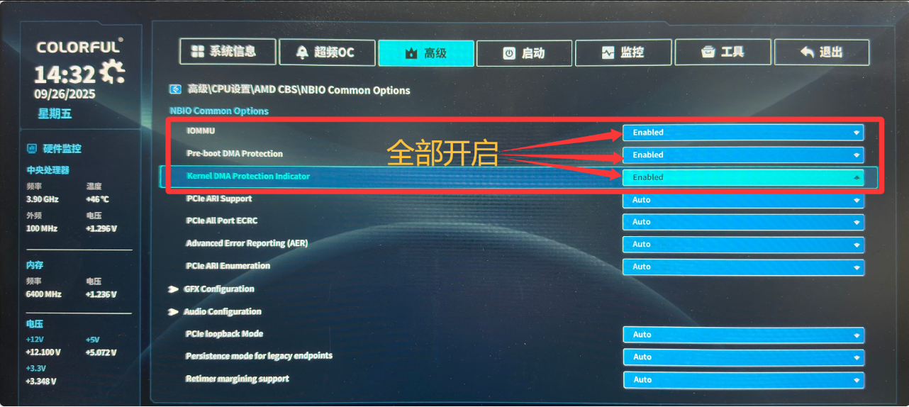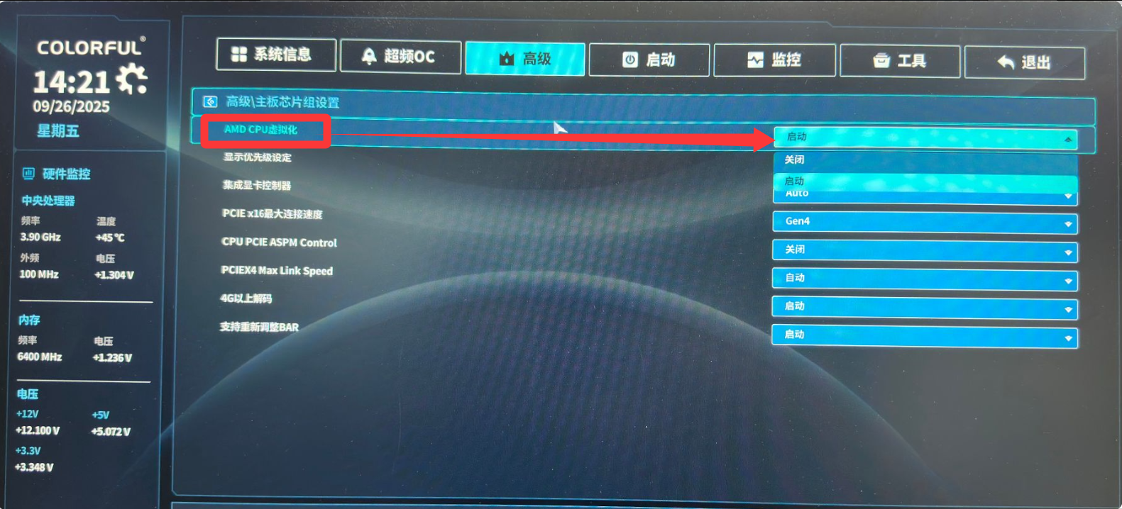 七彩虹B850系列设置虚拟化和安全启动(VT丨SVM)