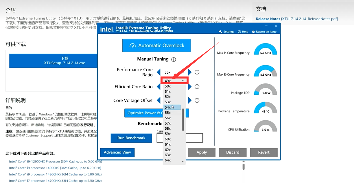 (XTU仅支持CPU尾缀带K和带X的型号,同时需要搭配Z系列的主板)