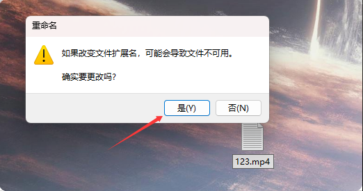 1.在视频导出的文件夹中创建一个txt文本文档(例如我们将视频导出到桌面,那么就在桌面创建该文本文档),将文本文档改名为“123”并将文本文档格式改为“mp4”,此时会提示改变扩展名会导致文件不可用的提示,直接点击“是”即可。