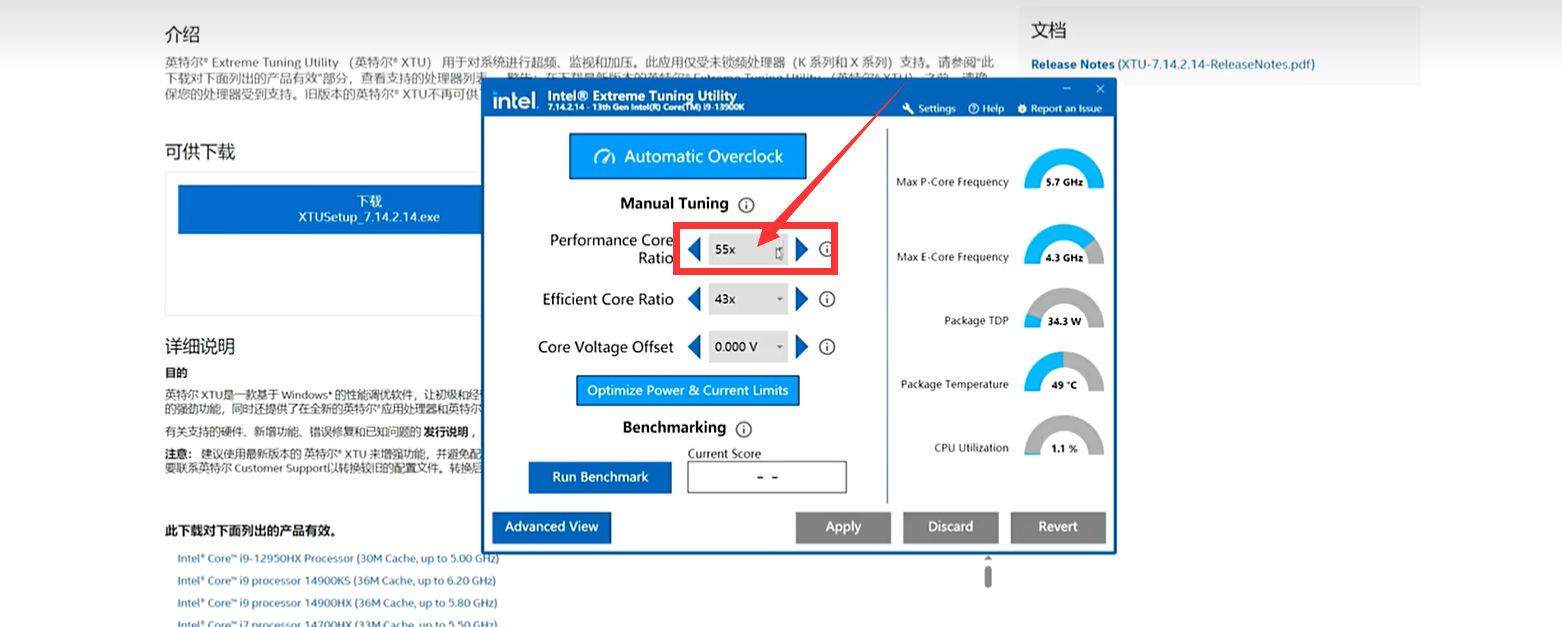 (XTU仅支持CPU尾缀带K和带X的型号,同时需要搭配Z系列的主板)