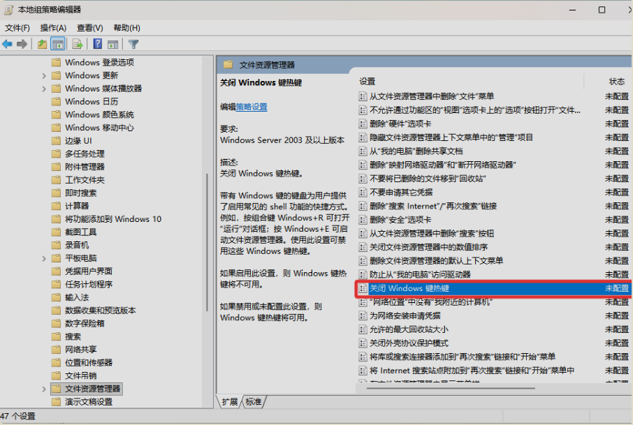 3、在窗口右侧找到并双击打开其中的“关闭Windows键热键”设置。