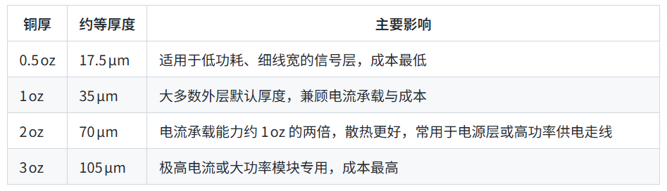 ● 内层(电源/地层):常见 0.5 oz‑1 oz,在需要大电流的电源层也会选用 2 oz。