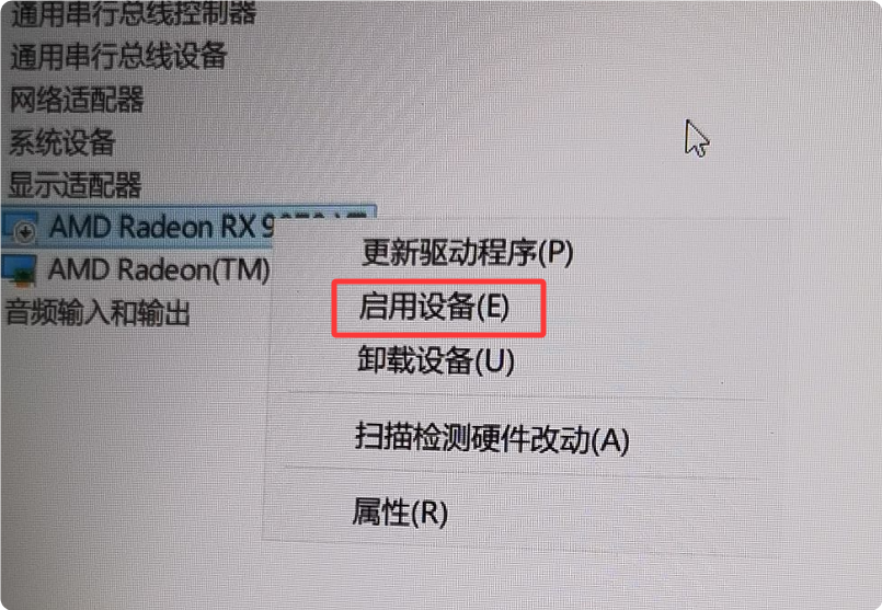 3.选择“启用设备”后,重新安装显卡驱动,然后重启电脑即可~