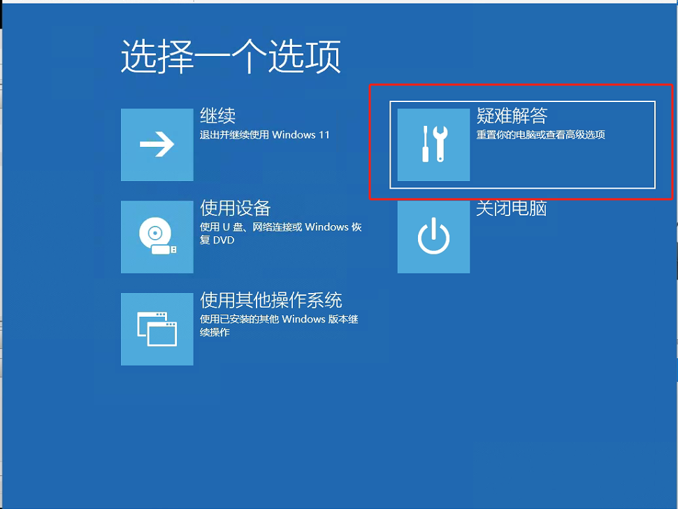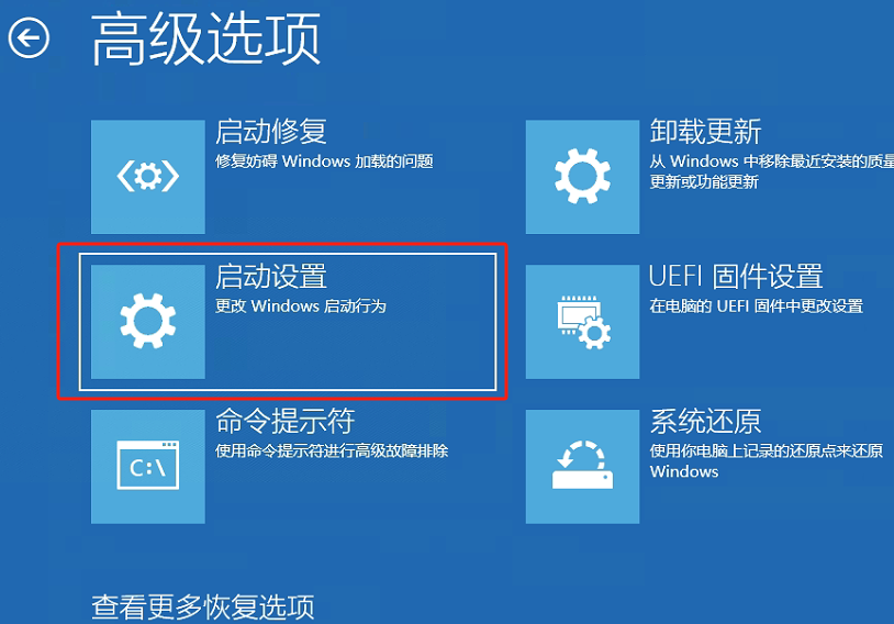 3.此时电脑会自动重启,进入到高级启动项目中,如下图依次点击:“高级选项”—“疑难解答”—“高级选项”—“启动设置”(此时电脑会重启再次进入选择界面) —选择“启用低分辨率视频”后可进入系统。(如下图步骤所示)