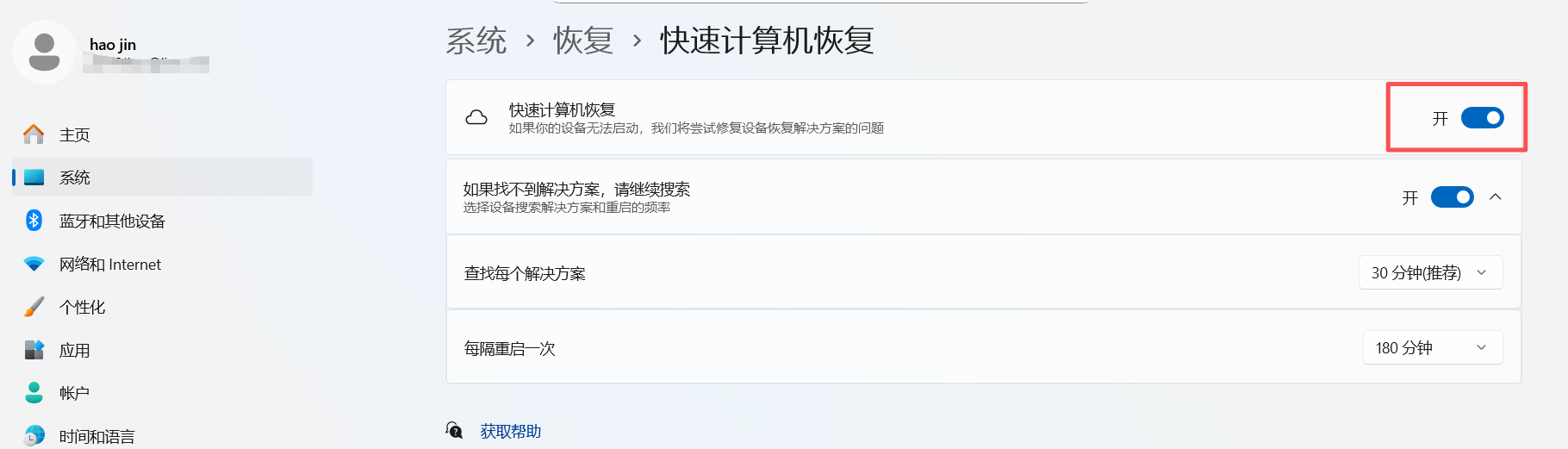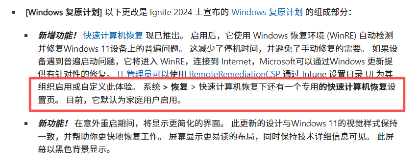 系统更新最新版本的24H2(26100.4770版本及以上)或25H2后,微软增加快速计算机恢复功能所致,本功能为检测到系统未正常开机,尝试自动联网修复问题页面