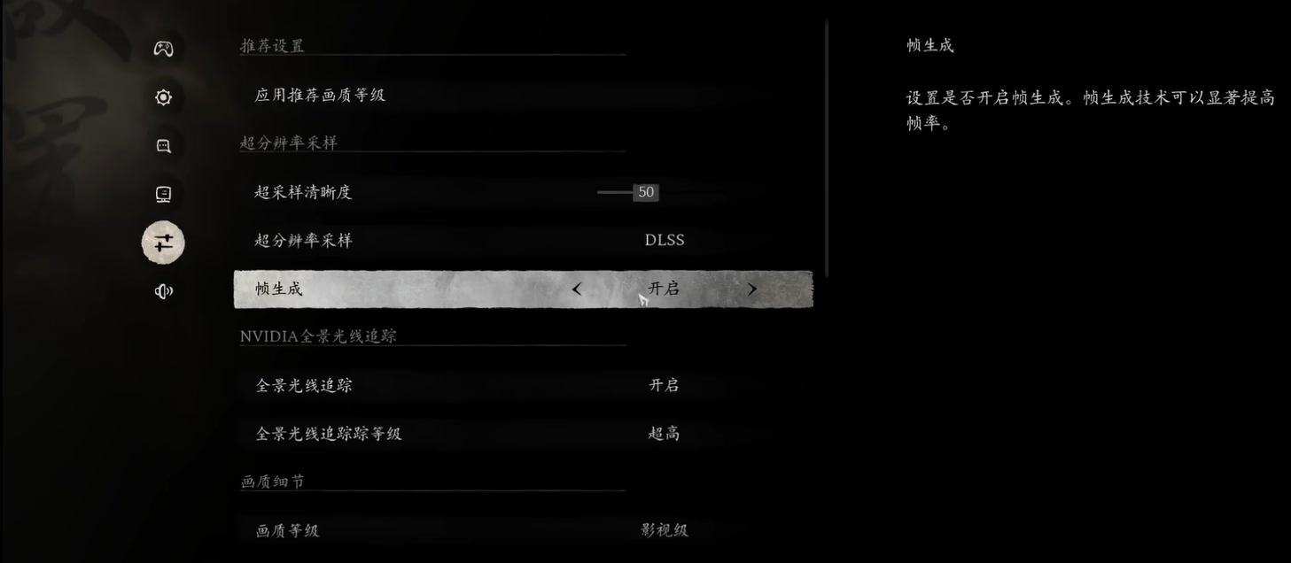 1. 部分游戏DLSS帧生成仅支持N卡,并且需要至少40系列显卡才可开启。(A卡用户开启超分辨采样FSR即可)
