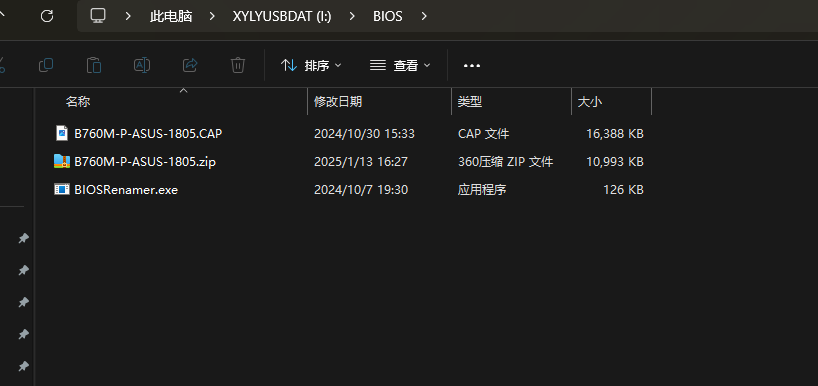 2.在U盘中建立一个名称为BIOS的文件夹,将BIOS文件下载到该文件夹之后,并同步解压到该文件夹内(如下图)