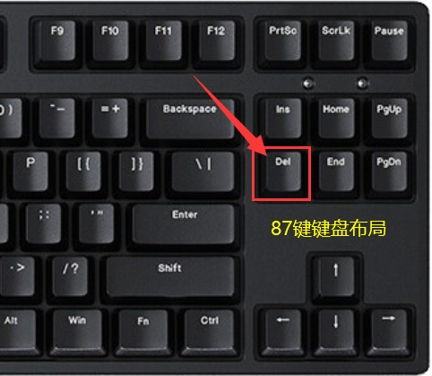3. 电脑重启,在开机的瞬间不停的点击键盘上的“del”键进入主板BIOS界面。(del键位参考下图)