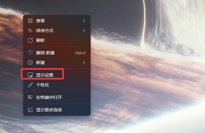 3. 桌面空白处点击右键选择“显示设置”。