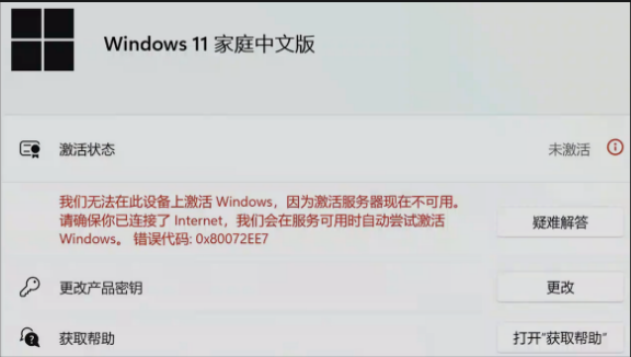 我们无法在此设备上激活Windows,因为激活服务器现在不可用