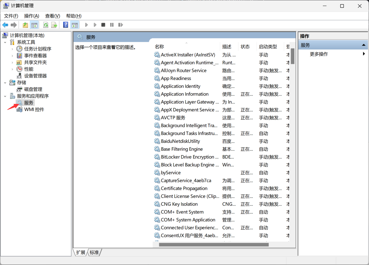 2.点击展开“服务和应用程序”---再点击“服务”。