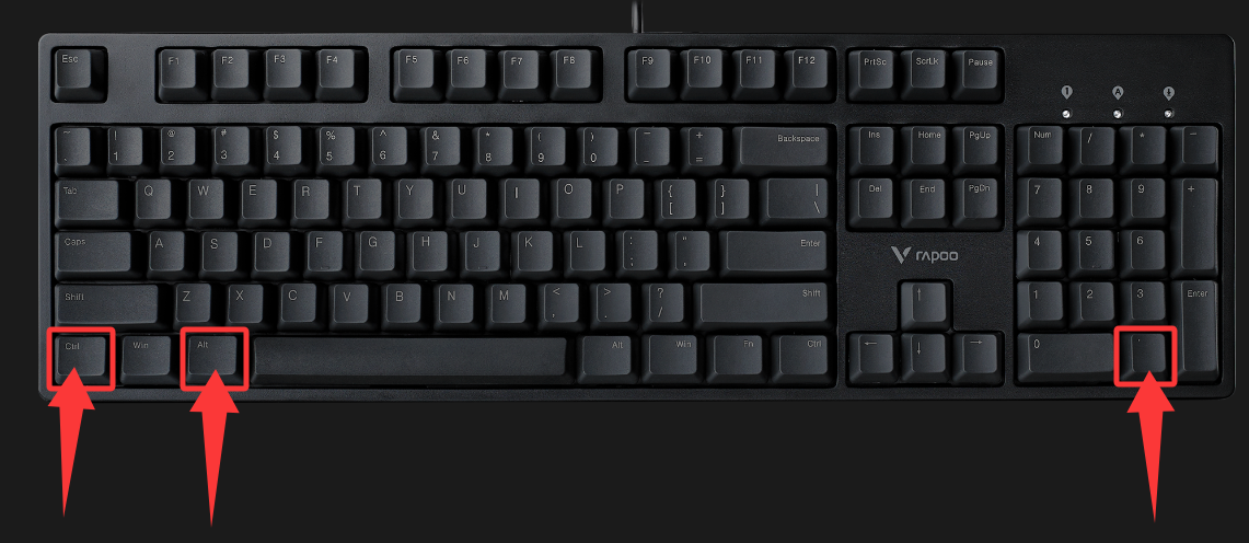 1.同时按下“Ctrl + Alt + Del”三个按键(如下图键盘所示),在出现的界面中选择“任务管理器”。