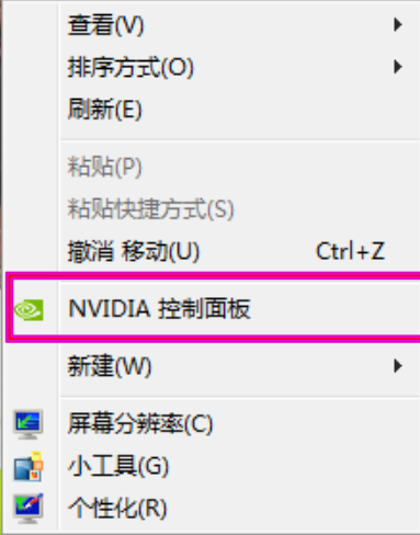 1.鼠标右键点击桌面空白的地方,在弹出的选项中选“NVIDIA控制面板”选项进入。