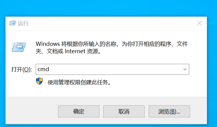1.按“win + R”键,打开运行窗口并 输入“cmd” 然后点击“确定”。